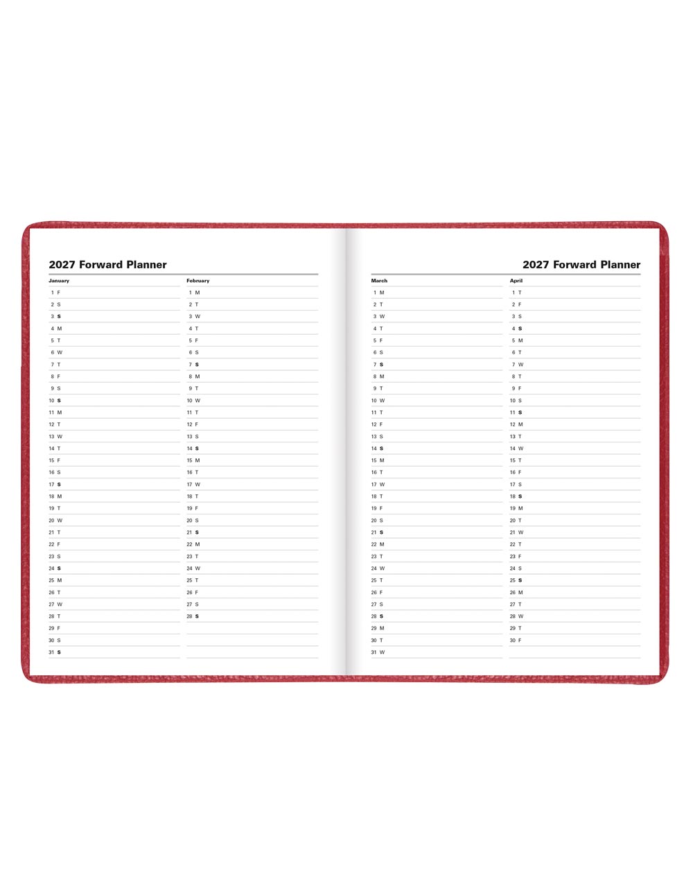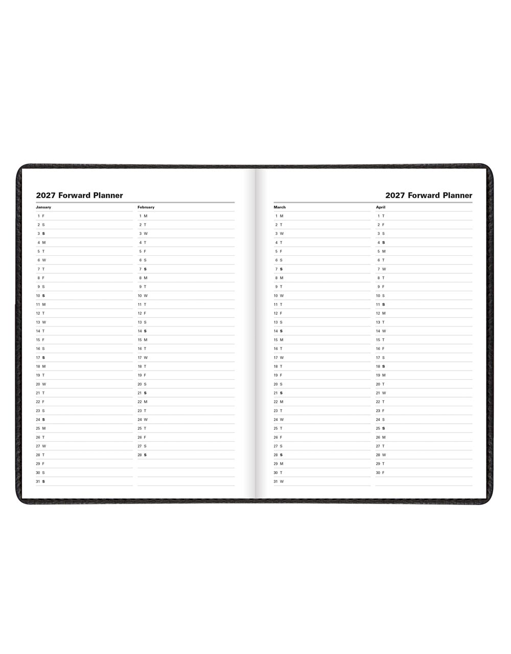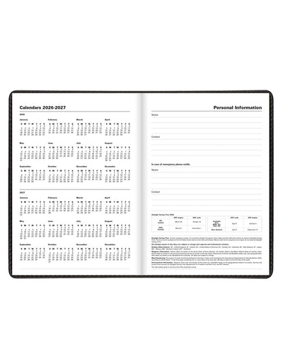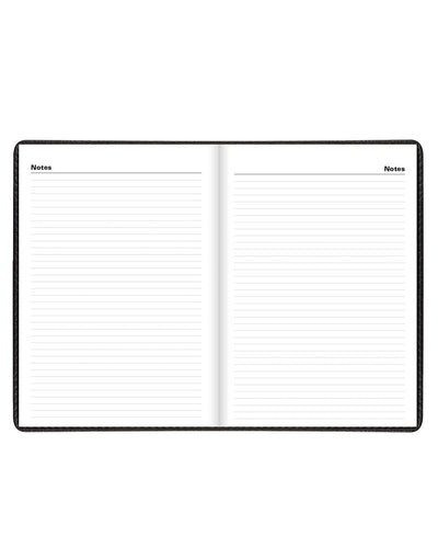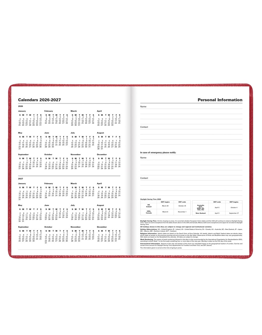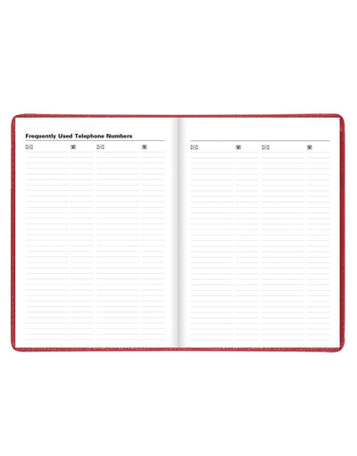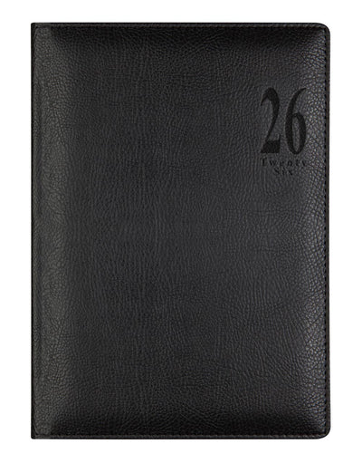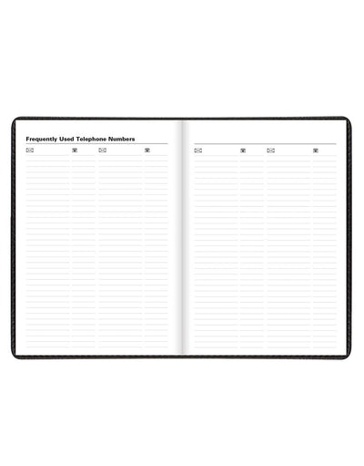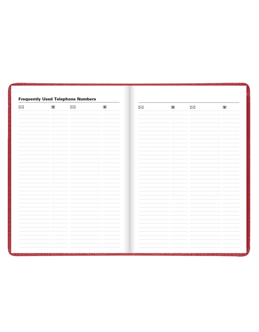 Un agenda relié classique en similicuir grainé qui vous assistera au bureau comme à la maison. Anglais.