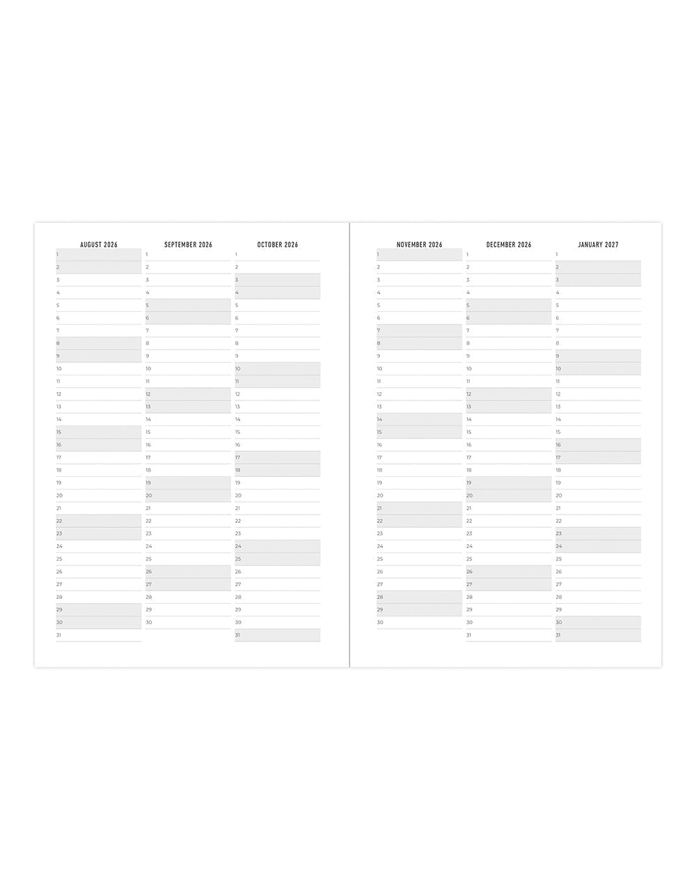 • 2026 - 2027 calendar blocks
