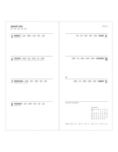 Plan your days with this beautiful Slim planner. Featuring an intricate, deeply embossed, floral design and an unruled week to view planner layout.